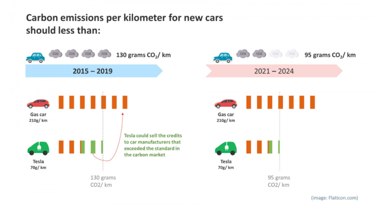 Since 2021, the EU has a set limit of 95 g CO₂/km for the average emissions of new cars. This benchmark was so strict that many traditional manufacturers could not meet it. (Jones Day, 2024)