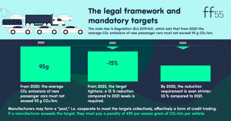 The main law is Regulation (EU) 2019/631, which sets that from 2020 the average CO₂ emissions of new passenger cars must not exceed 95 g CO₂/km.